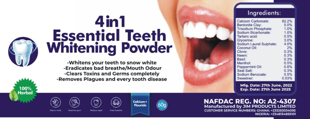 This 4in1 essential tooth whitening powder clears toxins and germs completely. Just incase you are having tooth rot/decay, tooth ache/sores, this is the best herbal powder for you. The active ingredients contained in this powder fights everything off completely.